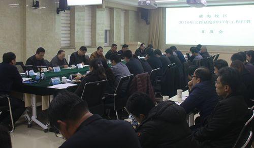 汇报会上,鹿林听取了威海校区2016年工作汇报和2017年工作打算。他对威海校区整体工作表示满意,对人才柔性引进等举措表示赞赏。他说,威海校区启用半年多以来,建设和发展开局良好,成绩凸显,发展势头良好,可喜可贺。他指出,2017年是学校转型发展的重要时期,学校发展的目标指向更清晰,发展速度要求更快。他对学校2017年 “一深入两挺进”总体谋划做了系统阐述,对深入推进应用型人才培养的转型发展、加速挺进学分认定和转换、加速挺进国际教育市场和认识提升实践能力做了部署。最后,他要求威海校区尽快形成整体化的发展谋划,纳入学校整体发展规划,力争经过两年的努力保证威海校区实现收支平衡,让威海校区成为名副其实的学校发展的示范区。