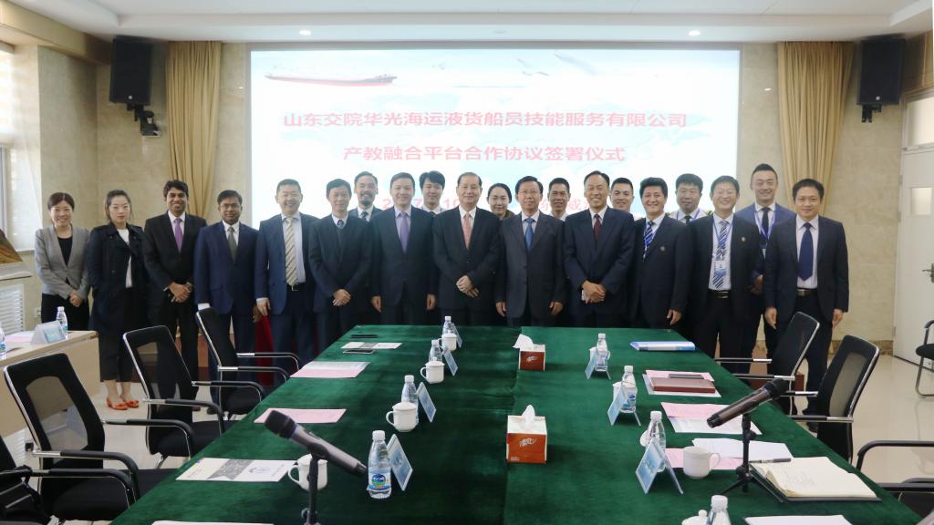10月24日上午,“山东交院华光海运液货船员技能服务有限公司”产教融合平台合作协议在威海校区举行。副院长、威海校区党委书记、管委会主任姜华平,华光船务管理(香港)有限公司总经理洪惠崙,华光海运控股有限公司首席运营官周建峰、山东国际海事集团董事长姜明旸出席签约仪式。仪式由威海校区管委会副主任刘庆波主持。