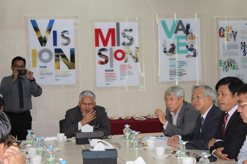 访问团实地考察了由中国交通建设集团承建的马来西亚东海岸铁路项目施工现场,并与马来西亚道路工程协会(REAM)、马来西亚电子电器研究所(Mimos)、马来西亚智能交通协会(ITSM)举行交流与合作会谈。会谈中,孙云早介绍了我校综合交通专业布局发展情况,详细列举了我校在道路工程和智能交通方面取得的成果,并与对方就智能交通、智慧城市在中国和马来西亚发展的现状及未来展望等展开深入讨论。