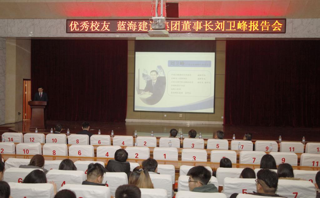 会后,我校优秀校友、蓝海建设集团董事长、安徽校友会秘书长刘卫峰作了“梦想,使青春绚丽;坚持,让人生出彩”的专题报告。