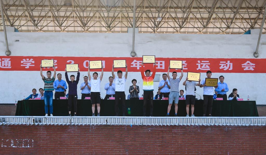 与会领导为获得团体总分前八名、女子团体总分前八名、男子团体总分前八名、精神文明奖和优秀组织奖的获奖单位代表颁奖。党委副书记唐勇致闭幕词。他代表学校向取得优异成绩的集体和个人表示热烈祝贺,向为此次运动会付出辛勤劳动的全体师生表示衷心感谢。他说,在为期两天的运动会上,参赛师生表现出了良好的体育道德风范和集体主义精神。全体运动员自觉遵守比赛规程,顽强拼搏,奋力争先;全体工作人员恪尽职守,默默奉献,为运动会提供了优质服务,保证了运动会的顺利进行。同时,他希望全校师生在学校转型发展的重要阶段,要振奋精神,抓住发展机遇,全力提高人才培养质量,加速壮大学校发展实力,努力开创学校各项事业快速发展的新局面。
