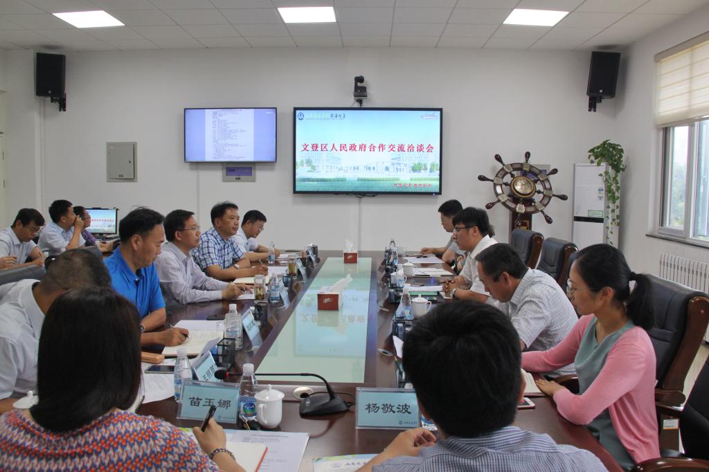 6月19日,威海市文登区人民政府副区长于昌利带领文登区经济和信息化局、科技局、商务局和技师学院的相关负责同志一行6人到我校威海校区就产学研合作、创新平台建设、应用型人才联合培养等进行合作洽谈。学校副院长姜华平会见客人并主持座谈会。