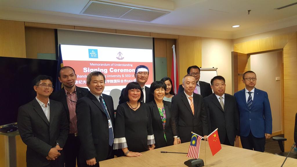 在马来西亚世纪大学,孙秀丽一行与世纪大学校董丹斯里克莱门·何、高级执行董事丹尼尔·滕、执行校长丘美兰及相关负责人进行了亲切交流。克莱门·何对孙秀丽一行的到访表示欢迎,并表达了两校在“2+2”合作、专业共建、师资培养方面的合作意愿。孙秀丽介绍了学校基本情况及现有国际合作情况,表示在“一带一路”背景下,双方可在各自优势专业开展“2+2”合作,促进学生互换交流,在世纪大学建设“世纪-山东交通学院”,开设轨道交通、土木工程、航空等相关专业。交流中,双方在学分互认、课程对接、师资培养、专业建设等方面进行了探讨,形成合作共识并签订谅解备忘录。随后,孙秀丽一行参观了学校实训实验室、孔子学院、教学楼等。