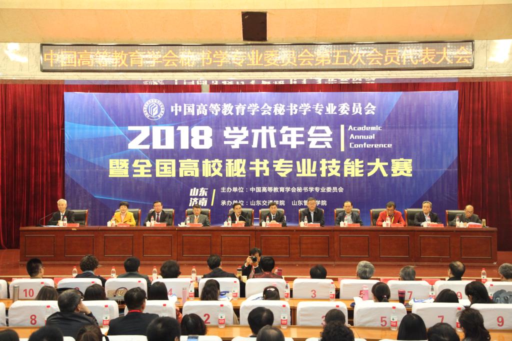 本次年会由中国高等教育学会秘书学专业委员会主办,山东交通学院经济与管理学院、山东管理学院人文学院联合承办。来自全国70多所高校的代表以及政府部门办公厅、北京师范大学出版社、《办公室业务》杂志社、《秘书战线》杂志社等新闻媒体共计300余人参加会议。此次秘书学术年会和全国高校秘书专业技能大赛的顺利召开,加强了我校同全国其他高校的交流合作,对促进我校的学科专业建设将起到积极推动作用。