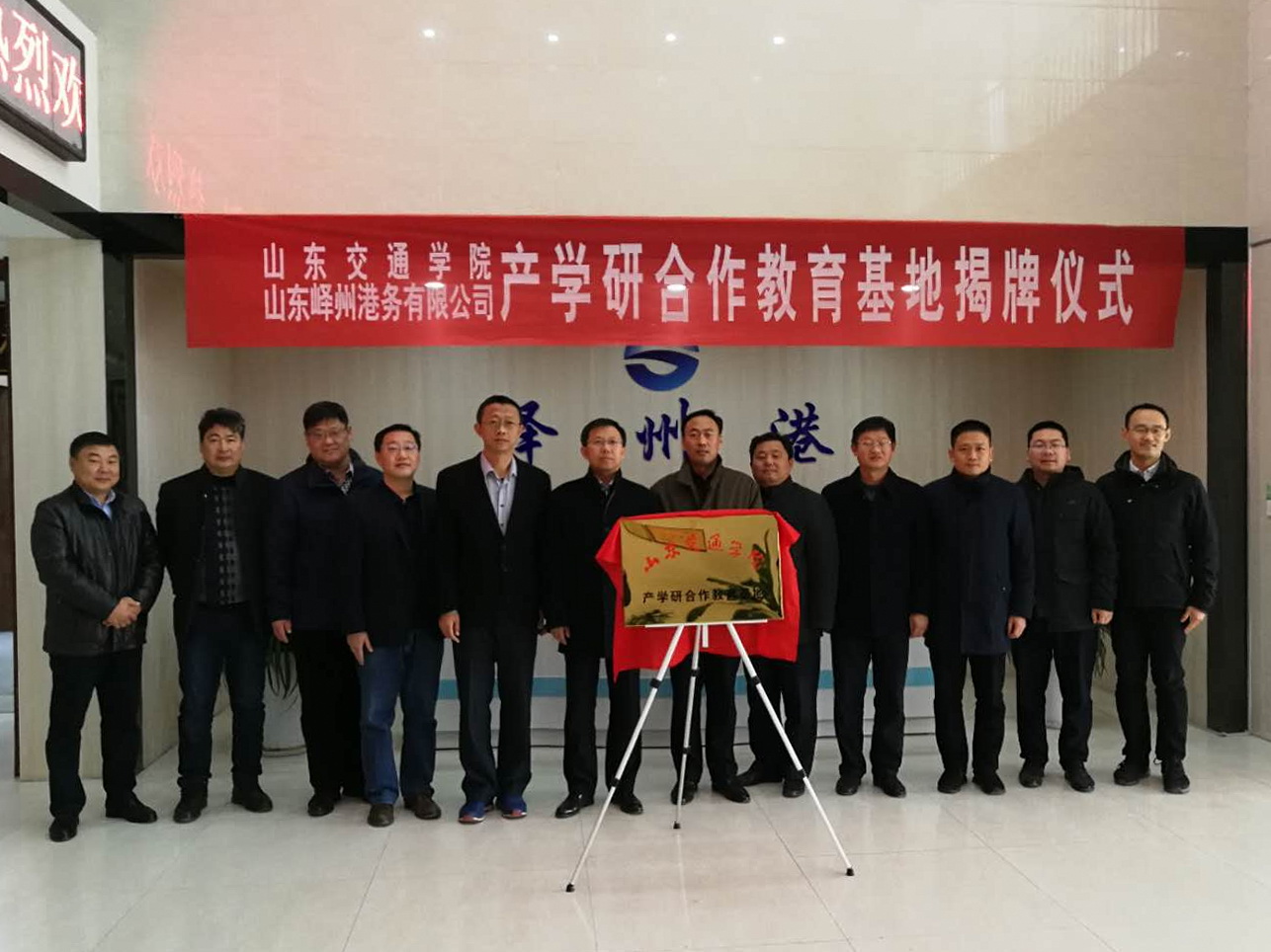 12月20日,我校与山东峄州港务有限公司联合共建的产学研合作教育基地揭牌仪式在峄州港举行。学校副院长姜华平与山东水运发展有限公司党委书记、董事长、总经理王礼,公司财务总监、山东峄州港务有限公司董事长宁伟,山东峄州港务有限公司总经理孙大川出席仪式,并共同为教育基地揭牌。
