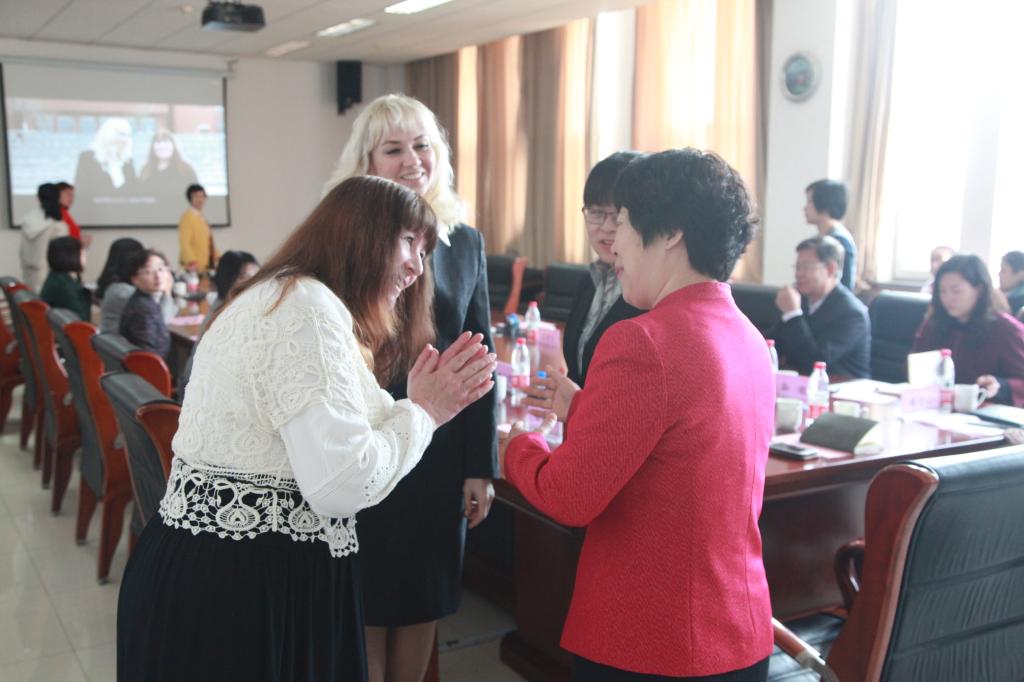 会上,交通土建工程学院副院长张爱勤、经济与管理学院副院长聂云霞、理学院教授沈玉凤、工程机械学院新进教师张书品、党委办公室(学校办公室)秘书科王菲、信息科学与电气工程学院辅导员魏思佳、山交教育咨询服务公司尹川蓉,外籍教师奥莉加、嘉丽娜,汽车工程学院能动172班学生袁可心依次结合自身实际交流发言。