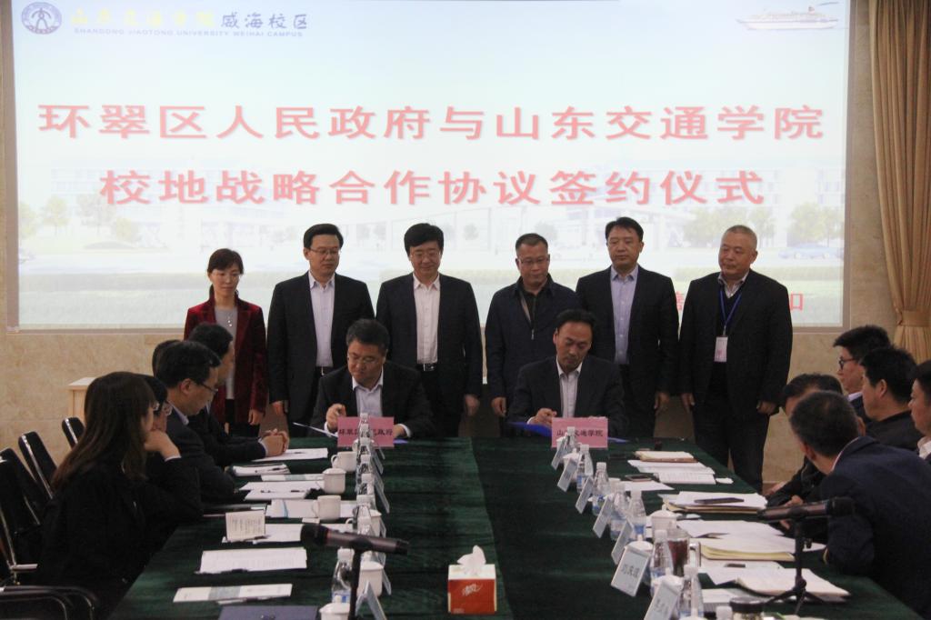 威海校区管委会副主任刘庆波和环翠区副区长尹振山分别代表双方,共同签署了校地战略合作协议,双方将在科技研发和成果转化、人才交流与培训、发展规划与决策咨询、大学生创新创业孵化等方面进行校地合作。