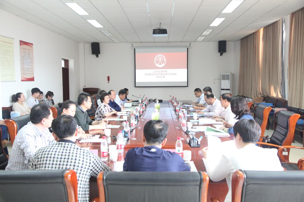 5月14日下午,省教育厅调研组组长、青岛大学国际教育学院院长汪运波一行5人来我校专题调研高等教育对外开放管理工作。学校在长清校区办公楼第一会议室举行工作汇报会,副院长徐晓红参加会议。
