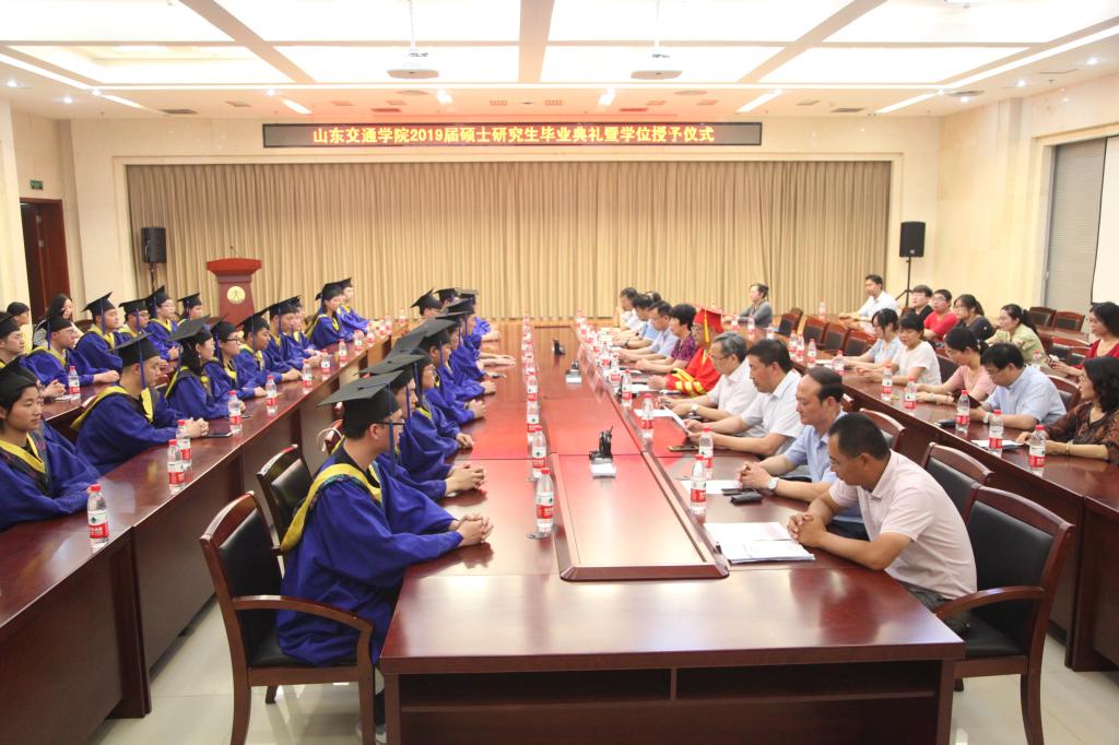 在学位授予仪式上,孙秀丽为省级优秀毕业研究生颁发了荣誉证书,陈松岩为每一名毕业研究生拨穗正冠并合影留念。汽车工程学院研究生李彦桦、交通土建工程学院教师叶亚丽分别代表毕业研究生和导师发言,为毕业生们和学校的发展送上了美好祝福。