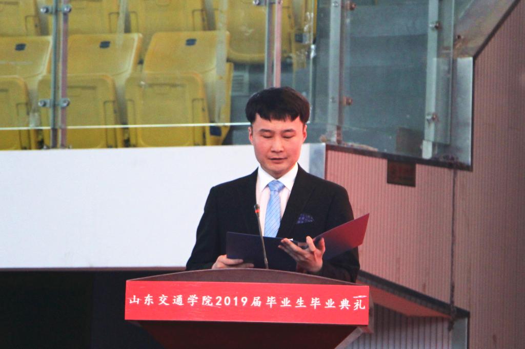 典礼在激昂的国歌声中拉开帷幕。副院长徐晓红宣读了《关于表彰2019届优秀毕业生等有关通报》。学校领导分别为校级优秀毕业生代表、省级优秀毕业生代表、自主创业优秀毕业生代表、西部计划志愿者颁奖。
