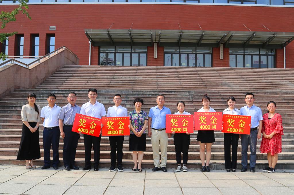 典礼结束后,党委书记孙秀丽、党委副书记唐勇,亲切接见了西部计划志愿者同学,详细了解他们在校学习和家庭情况,并送上了临行的祝福和嘱托。