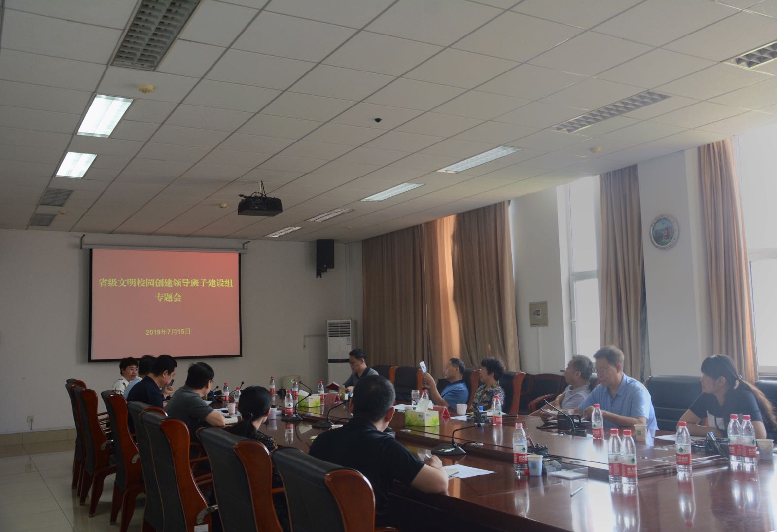 会上,党委宣传部部长、创建办主任娄进举传达了省文明办、省教育厅《关于评选表彰第二届省级文明校园的通知》精神,并就暑假期间创建办的工作进行安排。创建办副主任闫荣双解读了学校《测评细则》。