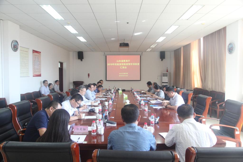汇报会在学校长清校区办公楼第一会议室举行。孔祥云对检查组的到来表示热烈欢迎,向专家组简要介绍了学校的基本情况和近年来在教学、科研方面取得的成果。他表示,安全管理工作无小事,学校一定全力配合检查组工作,确保检查工作顺利进行,同时以此次检查为契机,进一步加强实验室危险废物安全管理工作,进一步完善相关安全管理规章制度,提升安全管理水平。