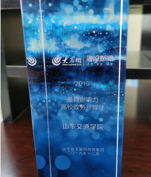 12月20日,由山东省互联网传媒集团主办的山东高校品牌建设与传播管理研讨会暨2019山东最佳社会声誉高校颁奖仪式在临沂大学举行,我校入选 “2019年度山东最具影响力高校政务新媒体”和“2019年度山东最佳社会声誉高校(精进)”两个榜单。