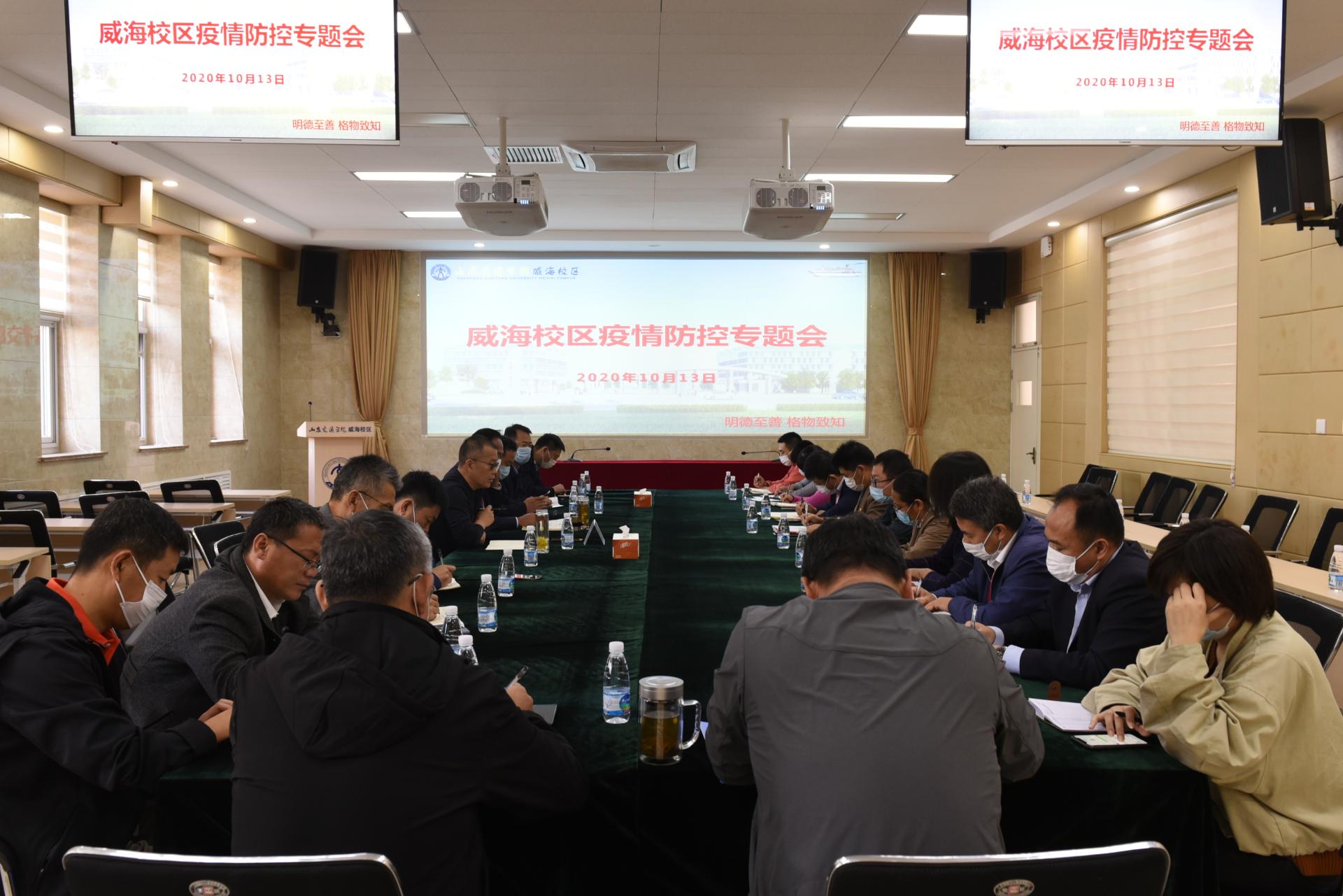 10月13日,威海校区疫情防控专题会在校区第一报告厅举办,副院长李贞涛出席并主持会议。
