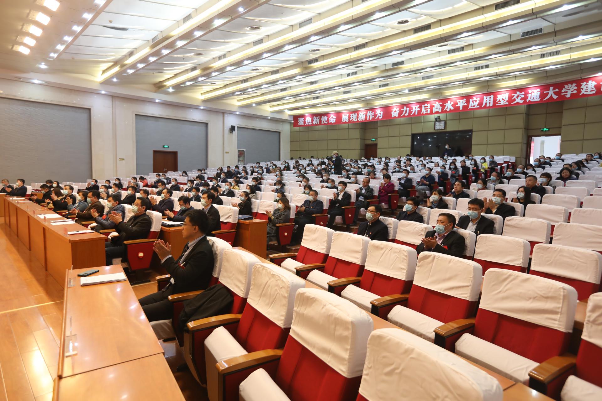 大会指出,今后五年,学校工作要围绕建成“高水平应用型交通大学”这一宏伟目标,着力建设以党的全面领导为统领的现代大学治理体系,突破硕士点、研究生规模、学科专业结构、教学成果、科研成果、基础设施条件等六个关键指标,加强特色优势凸显的学科筑峰体系、五育并举的人才培养体系、高层次人才引领的人才引育体系、基础应用双轮驱动的科技创新体系、融入交通强国战略的社会服务体系、包容开放的国际交流合作体系、以人为本绿色发展的服务保障体系等七个方面的体系建设,努力建设特色交大、创新交大、活力交大、开放交大、美丽交大、幸福交大!