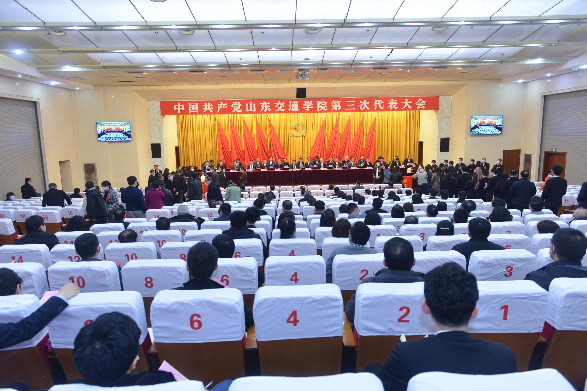 3月11日下午,在圆满完成各项议程和任务后,中国共产党山东交通学院第三次代表大会闭幕式在长清校区学术报告厅举行。大会闭幕式由党委书记王焕斌主持,党委副书记、院长陈松岩致闭幕词。