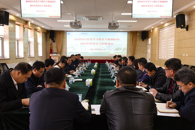 上午,威海校区在第一报告厅召开校区党史学习教育专题调研暨2021年度重点工作推进会。会上,威海校区机关党总支、航运学院、船舶与港口工程学院、国际商学院、基础教学部、威海海洋信息科学与技术研究院相关负责同志汇报了2020年取得的成绩、2021年工作的计划。