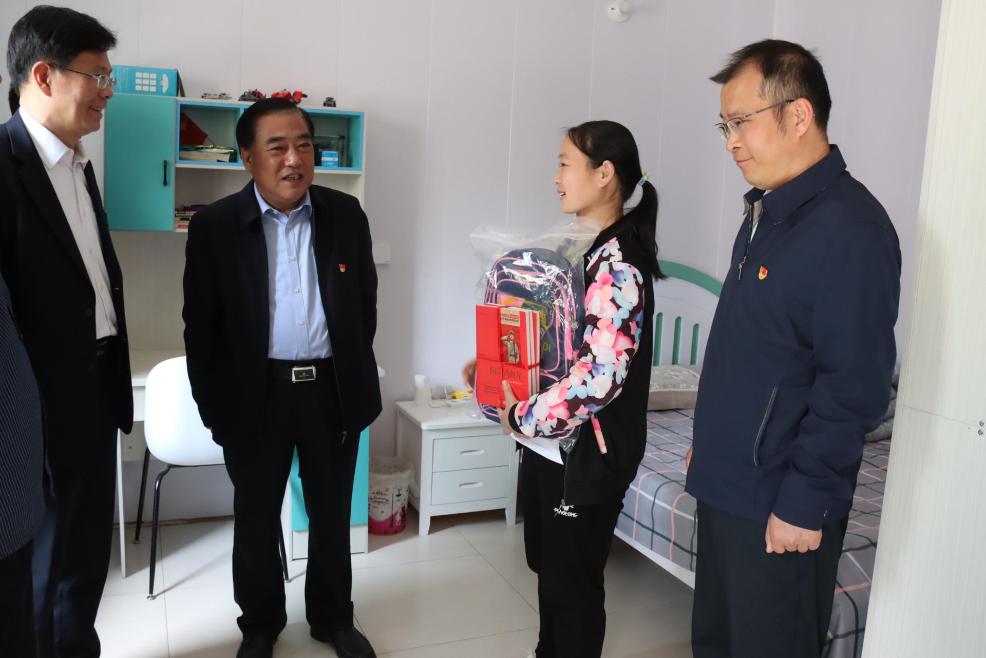 随后,王焕斌一行进行了实地走访,在“希望小屋”受助家庭,向他们赠送了书包和书籍等学习用品,鼓励他们克服困难、努力学习;在老党员、贫困户家中,与他们亲切交流,详细询问他们的生活和身体情况,并嘱咐他们保重身体,一定要相信党的精准脱贫、乡村振兴政策会让他们生活越来越好,鼓励他们树立脱贫致富和乡村振兴的信心。