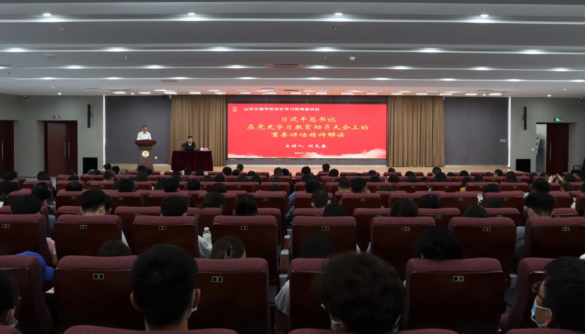 5月8日下午,甘肃省社科联副主席、兰州大学马克思主义学院教授刘先春,在长清校区明德楼101报告厅以《习近平总书记在党史学习教育动员大会重要讲话精神解读》为题作专题宣讲。学校党委书记王焕斌,党委副书记李贞涛,党委委员王晨晖、周颜玲出席讲座。讲座由李贞涛主持。