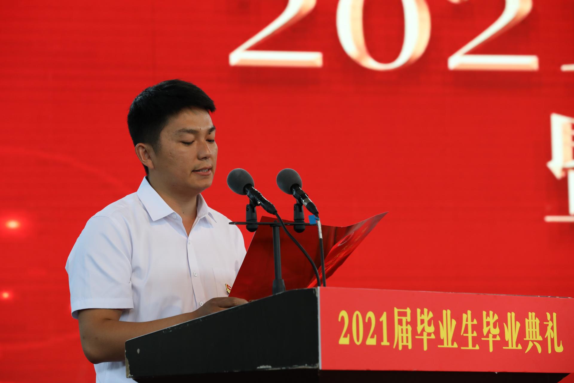 我校02级知名校友、中交四公局第四工程有限公司副总经理魏红兵作为校友代表发言。他对毕业生们表达了祝贺、对母校表达了感谢,祝愿全体毕业生们前程似锦、不负韶华,并分享了自己15年来在学习、工作和生活中的三点感悟。他认为,理想和目标是成功的原动力,信心和努力是成功的根本保证,知识和沟通是成功的法宝。