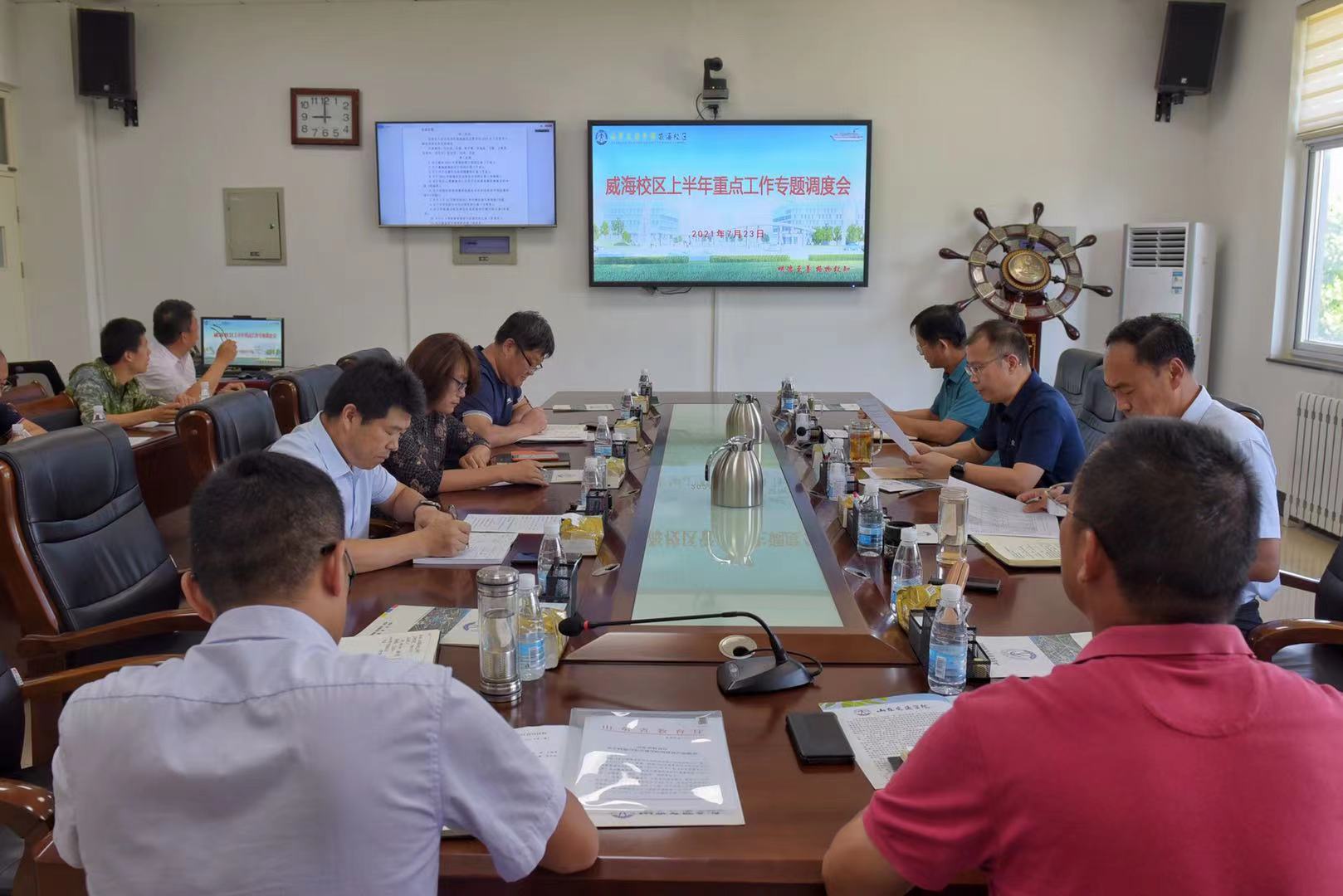 为有效推进威海校区各项工作顺利开展,确保2021年重点工作任务落实落地,7月23日,威海校区在校区会议室召开2021年上半年重点工作专题调度会。学校党委副书记,威海校区管委会主任李贞涛出席并主持会议。