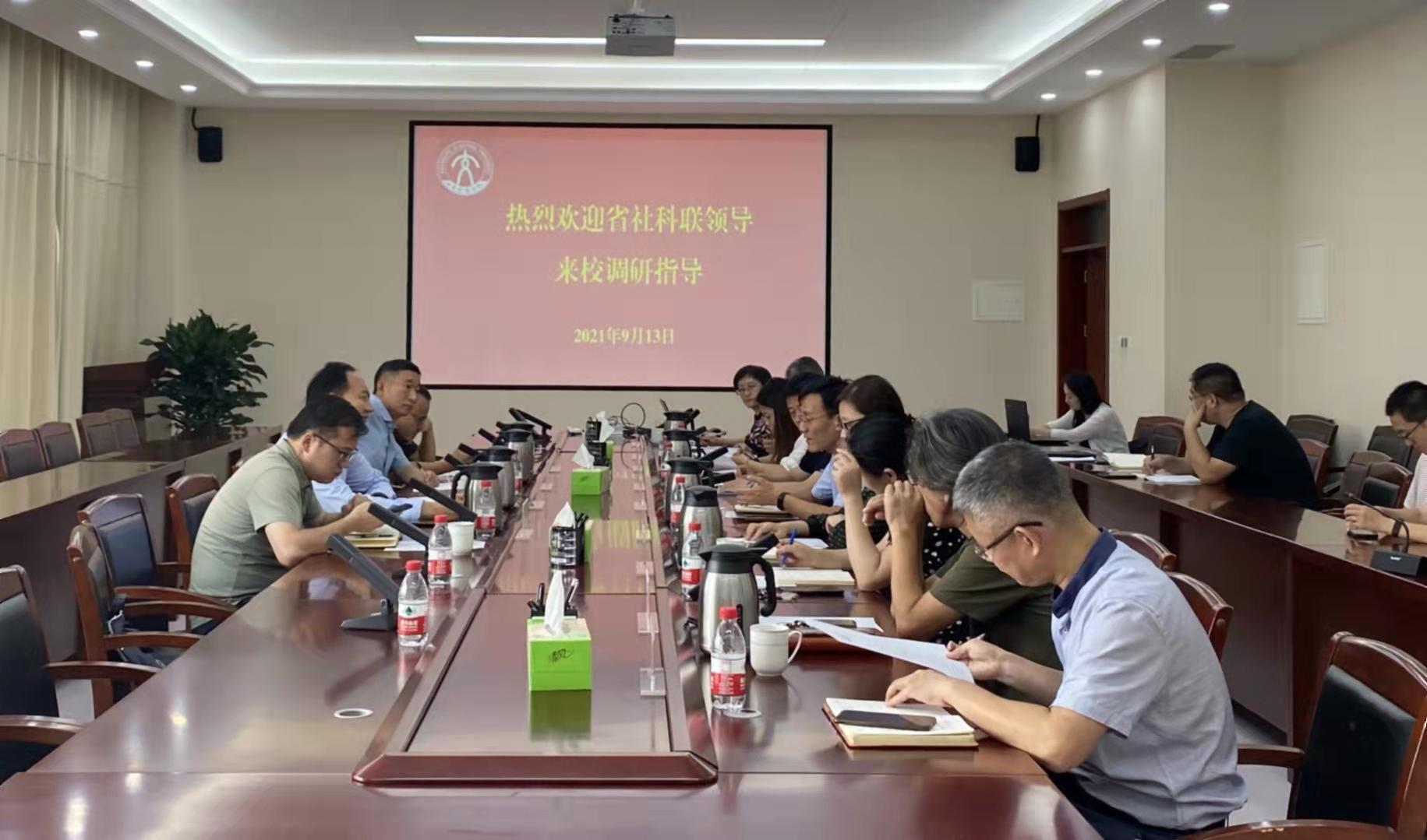 省社科联学术部四级调研员潘宏庆、科普部四级调研员刘坚、学术部一级主任科员丁纪伟,我校科研处相关负责人、人文社科类院部分管科研工作负责人、人文社科研究领域部分教师代表参加座谈会。