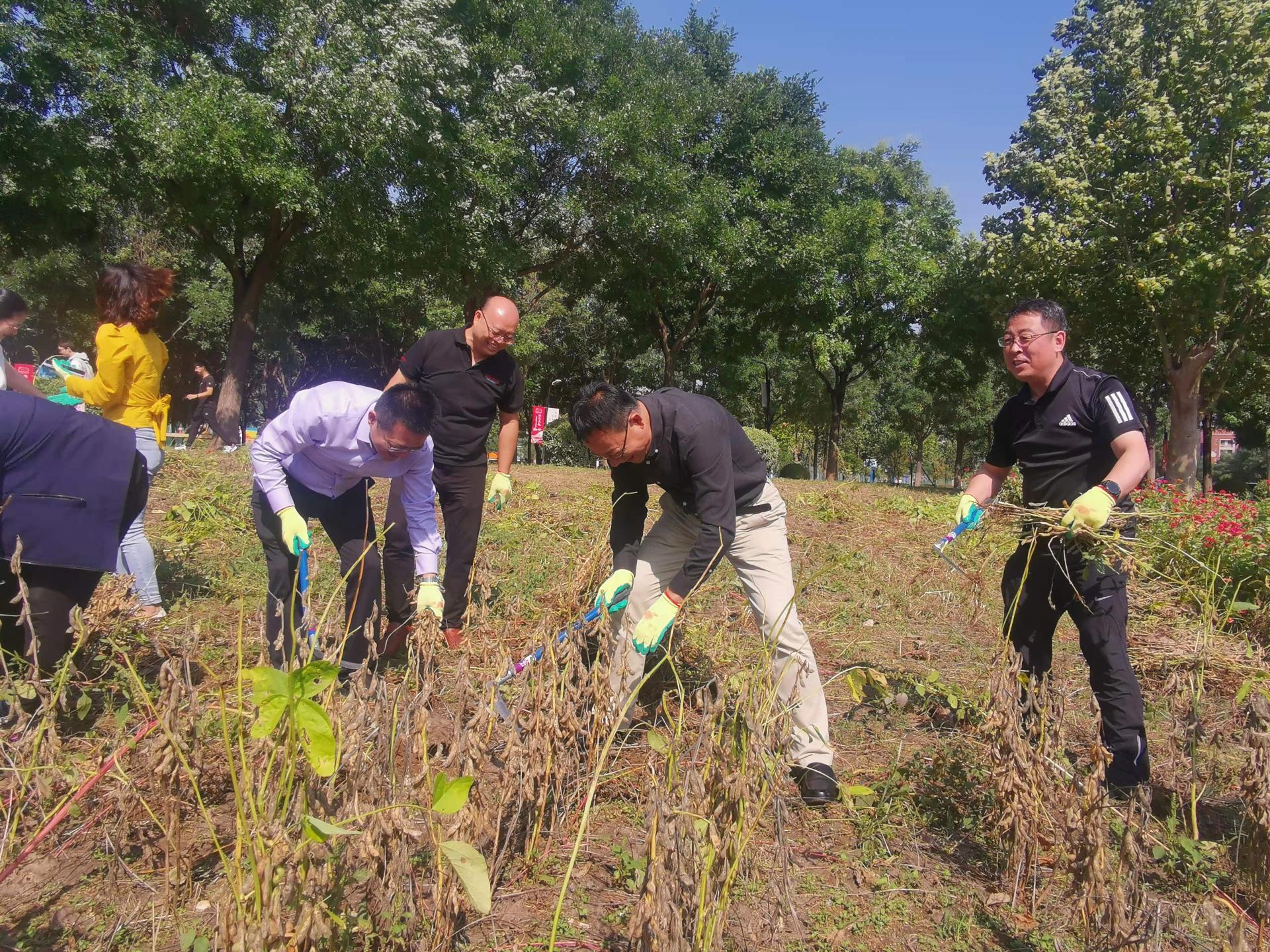 活动期间,大家集体完成了校内部分黄豆田的收割工作。山交服务党支部准备了镰刀,讲解了收割技术要领。党员同志们自发按垄分工,依次收割,齐头并进,有条不紊,汗水浸湿了衣衫,鞋子粘满了泥土,但大家毫无怨言,配合默契,脸上洋溢着劳动的喜悦。