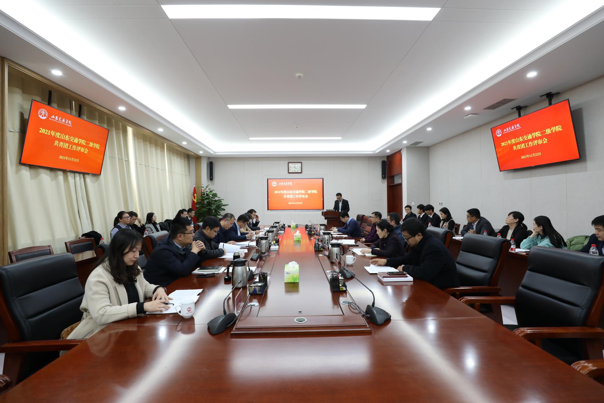12月22日下午,学校在长清校区明德楼303会议室举行2021年度二级学院共青团工作评审会。党委副书记李贞涛出席活动。
