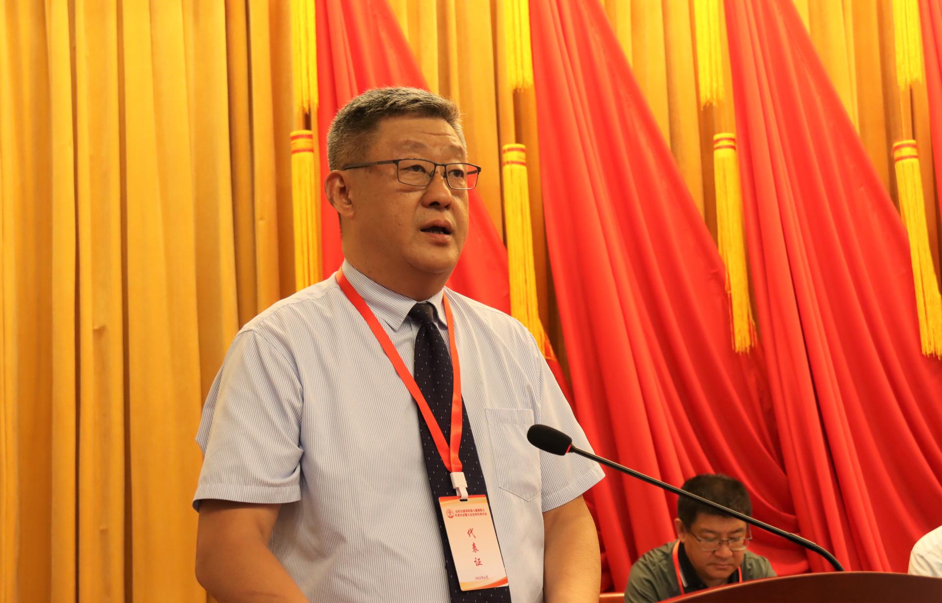 赵晓枫代表中国教育工会山东省委员会向学校这次“双代会”的召开表示热烈祝贺,她指出,山东交通学院建校60多年来,秉承“明德至善 格物致知”的校训和“严 尊 勤 全”的校风,艰苦奋斗、自强不息,致力于服务国家战略和地方经济社会发展,为国家社会培养输送了大批优秀人才,为区域经济社会发展作出了重要贡献。她表示,省教育工会将一如既往地关心和支持山东交通学院的各项工作,积极协调解决问题,努力为工会发挥作用创造便利条件、营造良好氛围、提供更有力的支持和帮助。