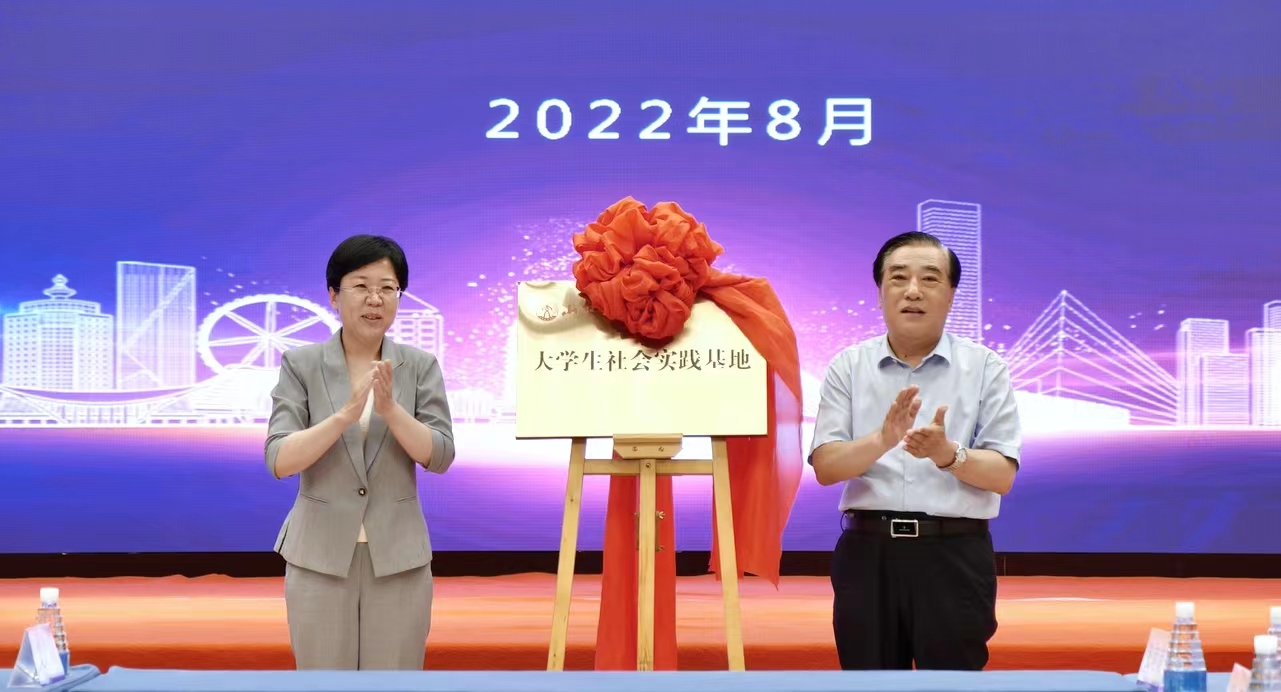 王焕斌与祁学兰共同为大学生社会实践基地揭牌。