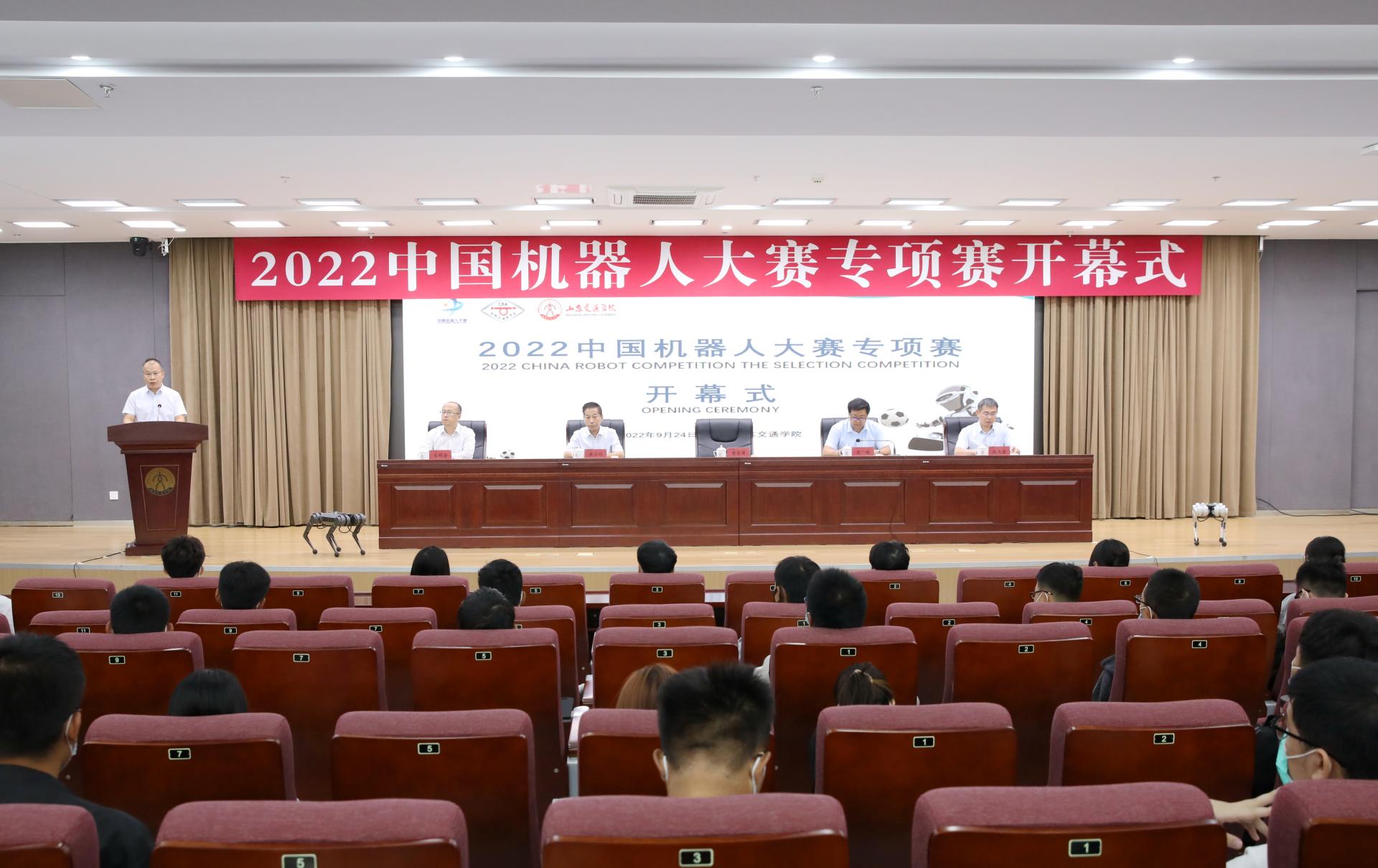 9月24日至25日,2022中国机器人大赛专项赛成功举办,来自全国各地295支参赛团队通过线上方式完成各项竞赛任务,开幕式在长清校区明德楼101报告厅举行,学校党委副书记李贞涛出席仪式并致欢迎辞。中国自动化学会副秘书长兼机器人竞赛与培训部主任、中国自动化学会机器人竞赛工作委员会副主任李实,中国自动化学会机器人竞赛工作委员会主任郑志强教授,中国自动化学会机器人竞赛与培训部副主任姜萌高级工程师,中国自动化学会机器人竞赛工作委员会副主任卢欣研究员,中国自动化学会机器人竞赛工作委员会秘书长王景川研究员,中国自动化学会机器人竞赛工作委员会副秘书长肖军浩副教授等多名专家通过线上方式出席开幕式。