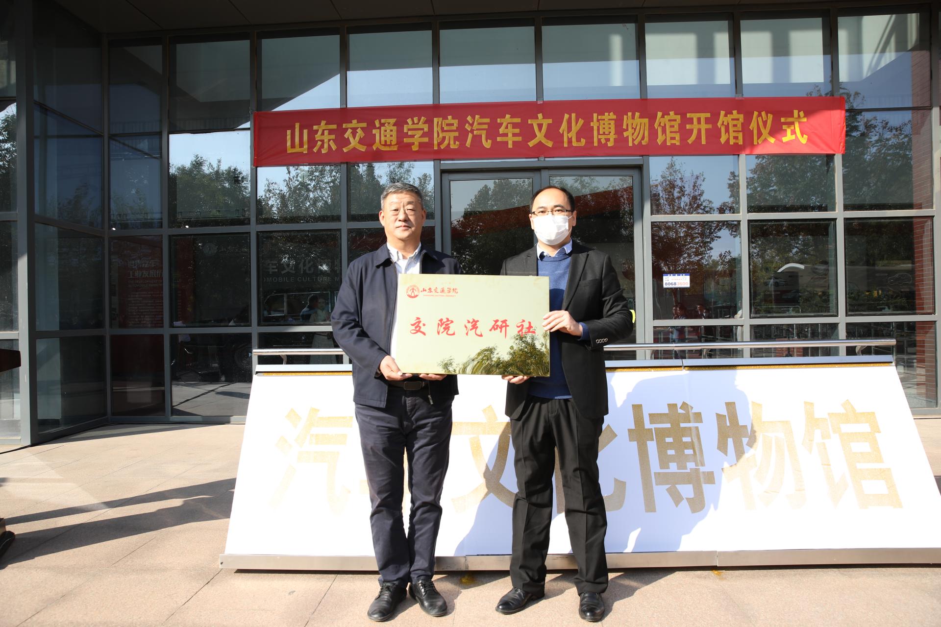 开馆仪式上,王焕斌、陈松岩、徐晓红、张洪星共同为汽车文化博物馆(一期)揭牌,陈松岩为汽车文化研究团队——交院汽研社授牌。