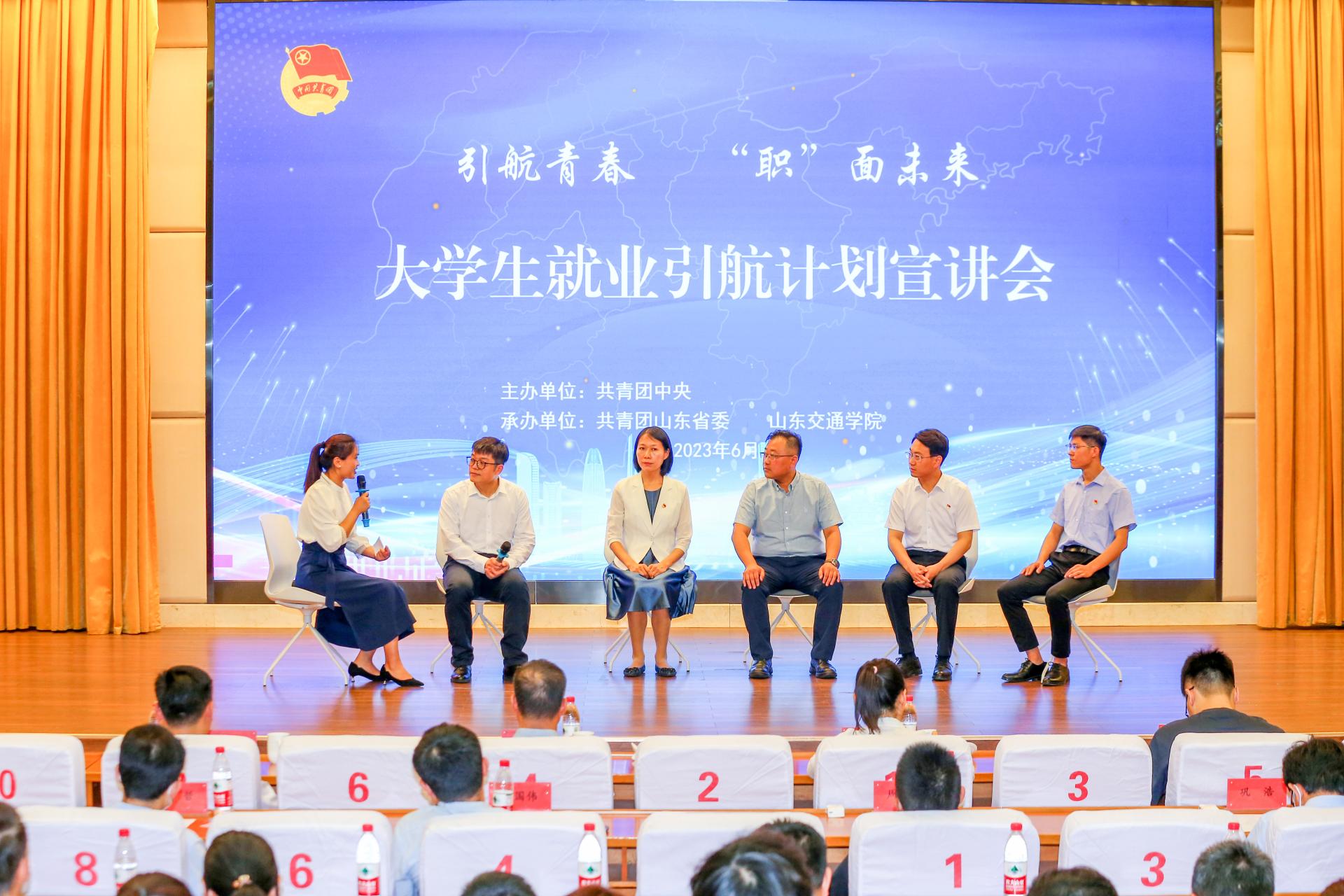 6月9日上午,全国大学生就业引航计划示范宣讲活动(山东专场)在我校成功举办。团中央青年发展部就业创业处处长刘闵、就业创业处干部白岩、团省委学校部负责人张宗银,我校党委副书记李贞涛出席活动。