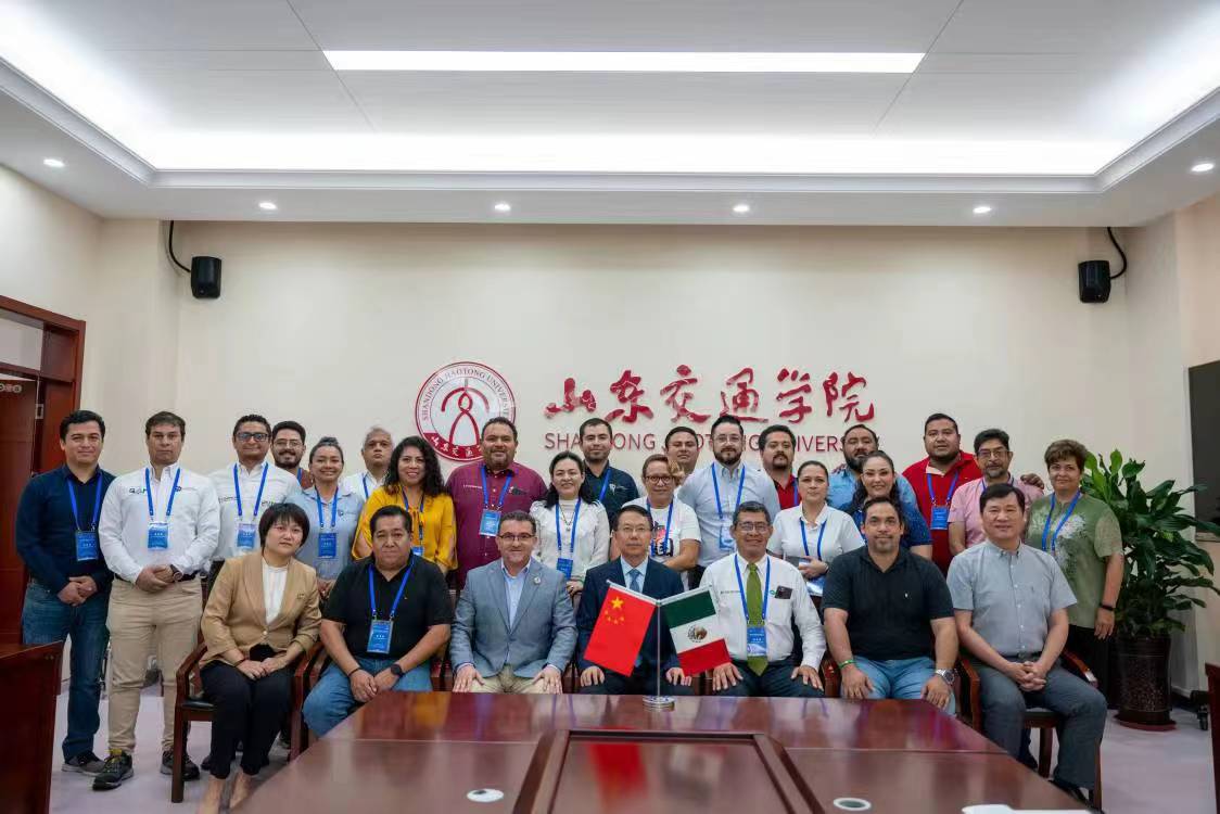 9月18日上午,北京交通大学国际教育学院涉外培训主管石韬伟,带领墨西哥轨道技术培训班24名学员到我校长清校区参观座谈。学校党委委员、副院长姜华平在长清校区明德楼301会议室会见客人并进行座谈。