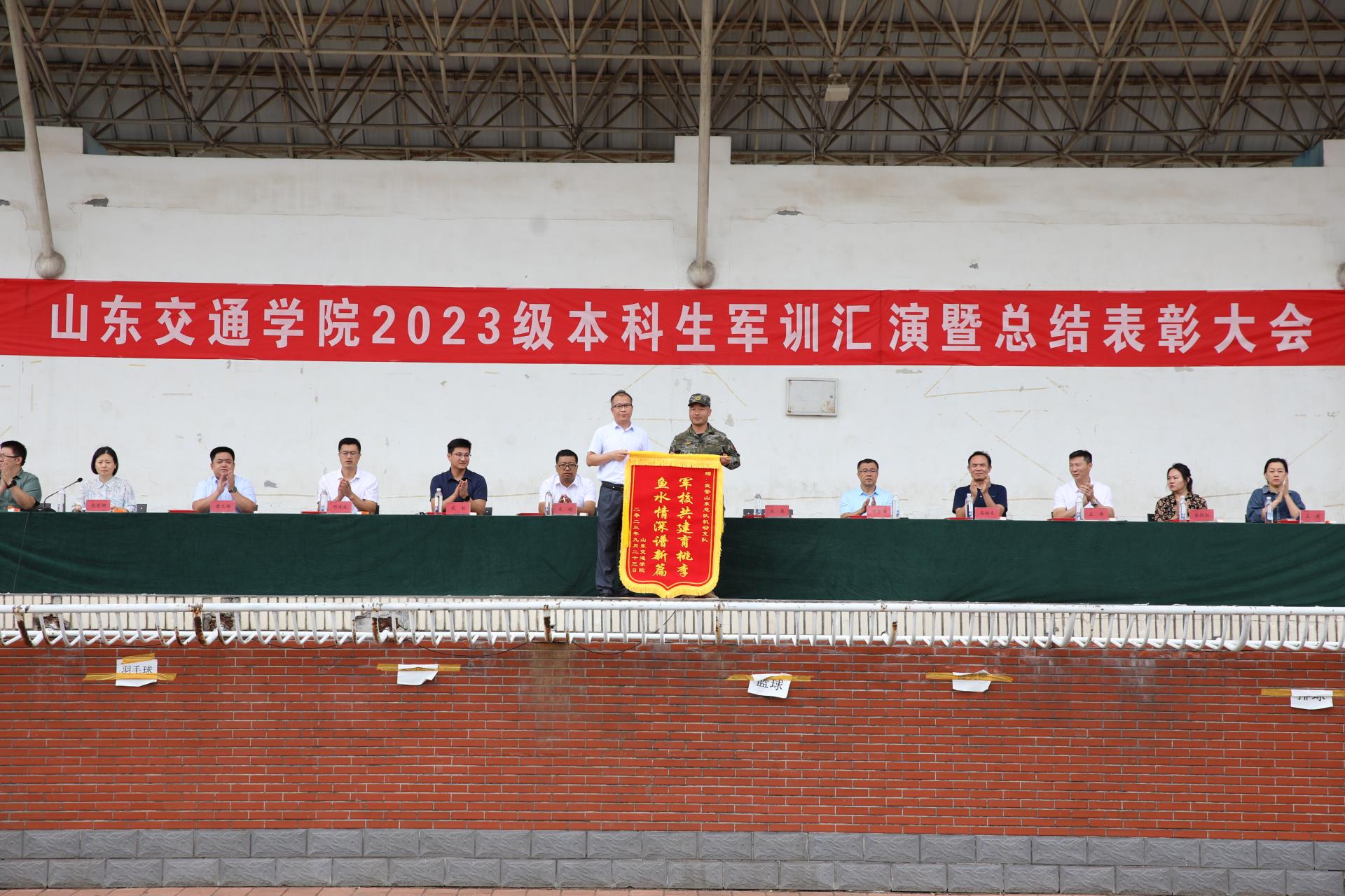 9月23日上午,学校2023级本科生军训汇演暨总结表彰大会在长清校区、威海校区体育场举行。学校党委副书记李贞涛,中国人民武装警察部队山东总队机动支队副大队长出席大会。