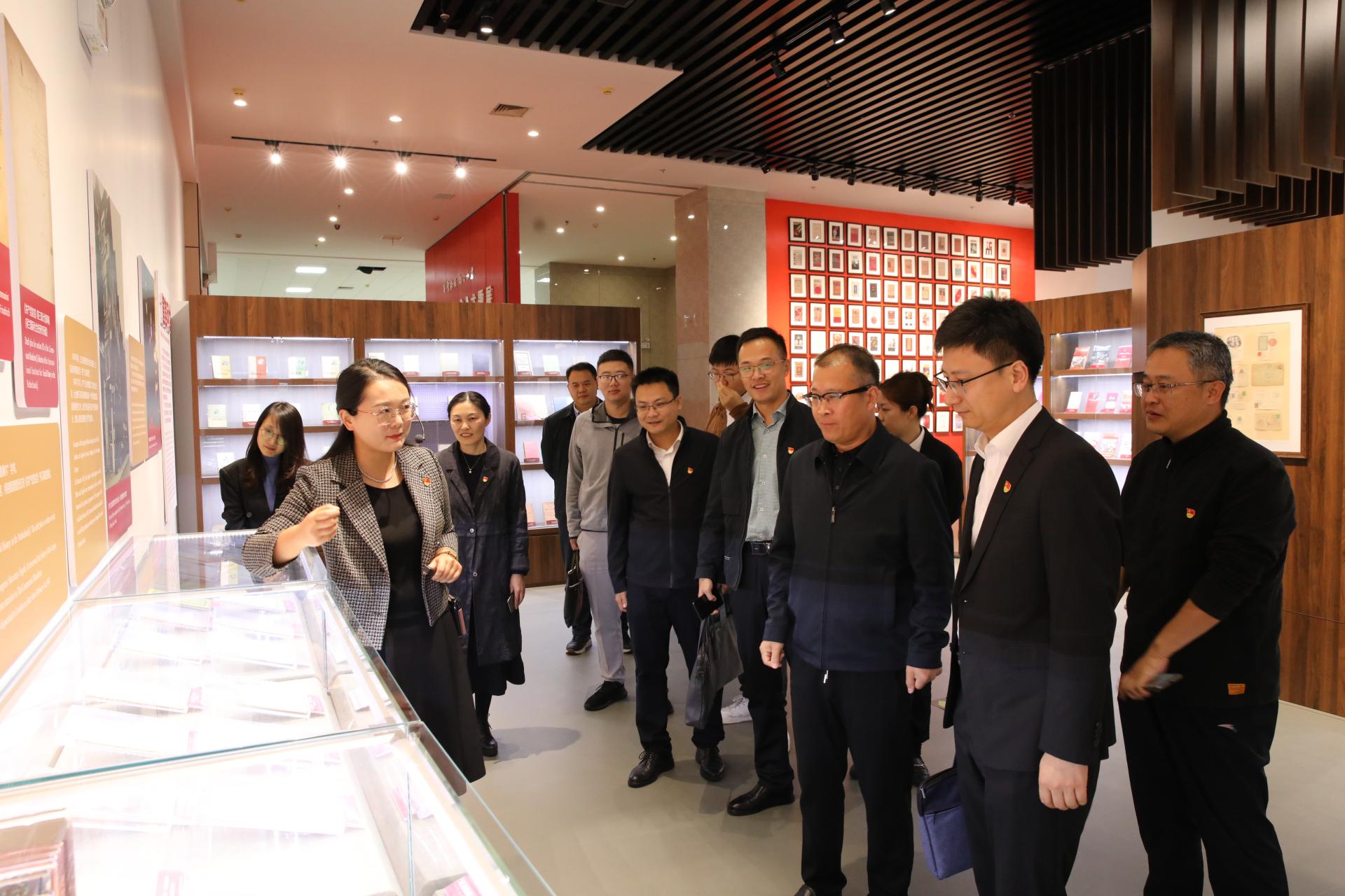 会见期间,李贞涛陪同吴俊一行参观了学校《共产党宣言》主题展。