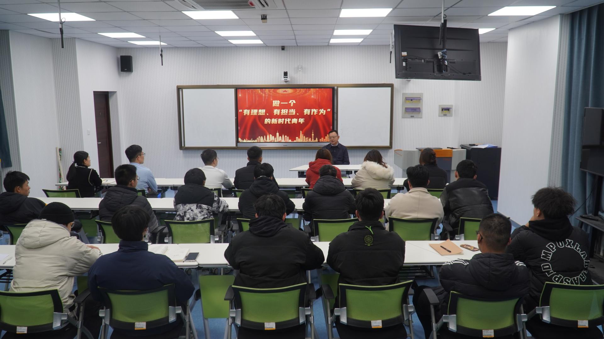 曲同军以《做一个“有理想、有担当、有作为”的新时代青年》为题,结合生动翔实的案例,从教育、教学、科技、人才等方面讲述了新时代青年应该具备敢于创新、敢于挑战、敢于担当的责任心和使命感,号召青年学生在新的赶考路上,全面学习贯彻习近平新时代中国特色社会主义思想,踔厉奋发、勇毅前行,在全面建设社会主义现代化国家的火热实践中绽放青春绚丽之花。
