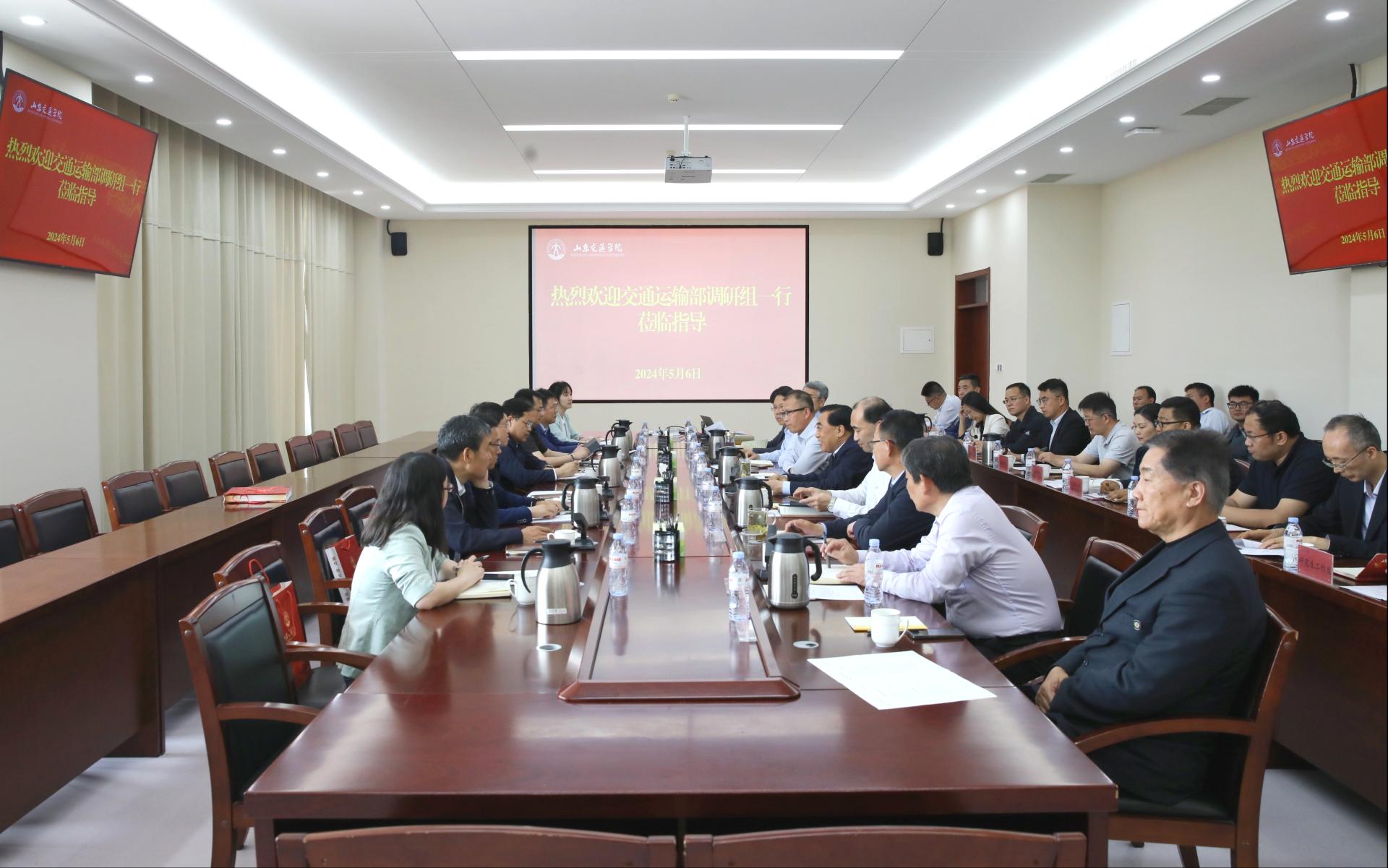 交通运输部科技司综合处、科技创新发展处、山东省交通运输厅科教处、国家重点研发计划重点专项管理专班负责人;学校国家级人才代表,相关职能部门、二级学院负责人参加调研座谈。
