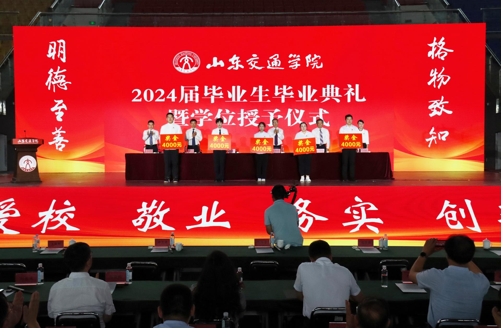 党委副书记李贞涛宣读《关于表彰2024届优秀毕业生和西部计划志愿者的通报》;党委委员、副院长李秀领宣读《山东交通学院学位评定委员会2024年第三次会议决议》。