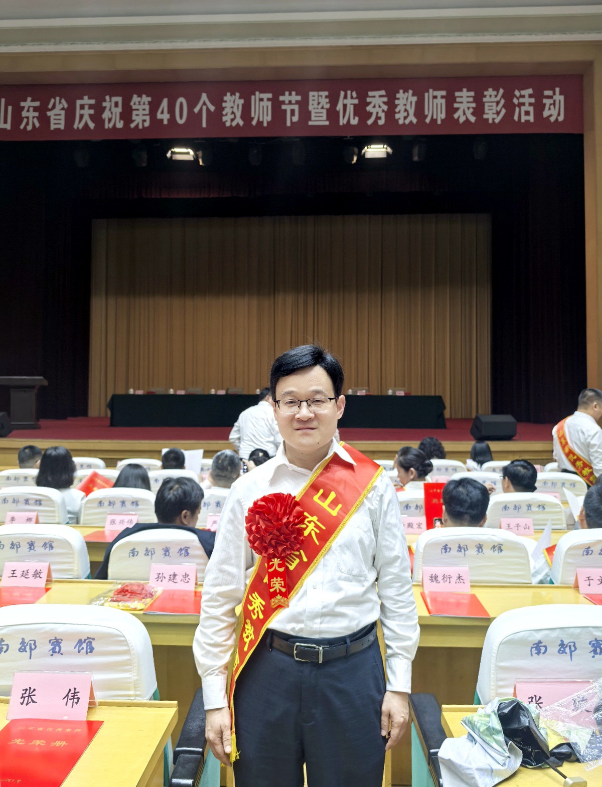 近日,山东省庆祝第40个教师节暨优秀教师表彰活动在济南举行。我校信息科学与电气工程学院(人工智能学院)朱振方教授作为“山东省优秀教师”代表应邀参加活动。