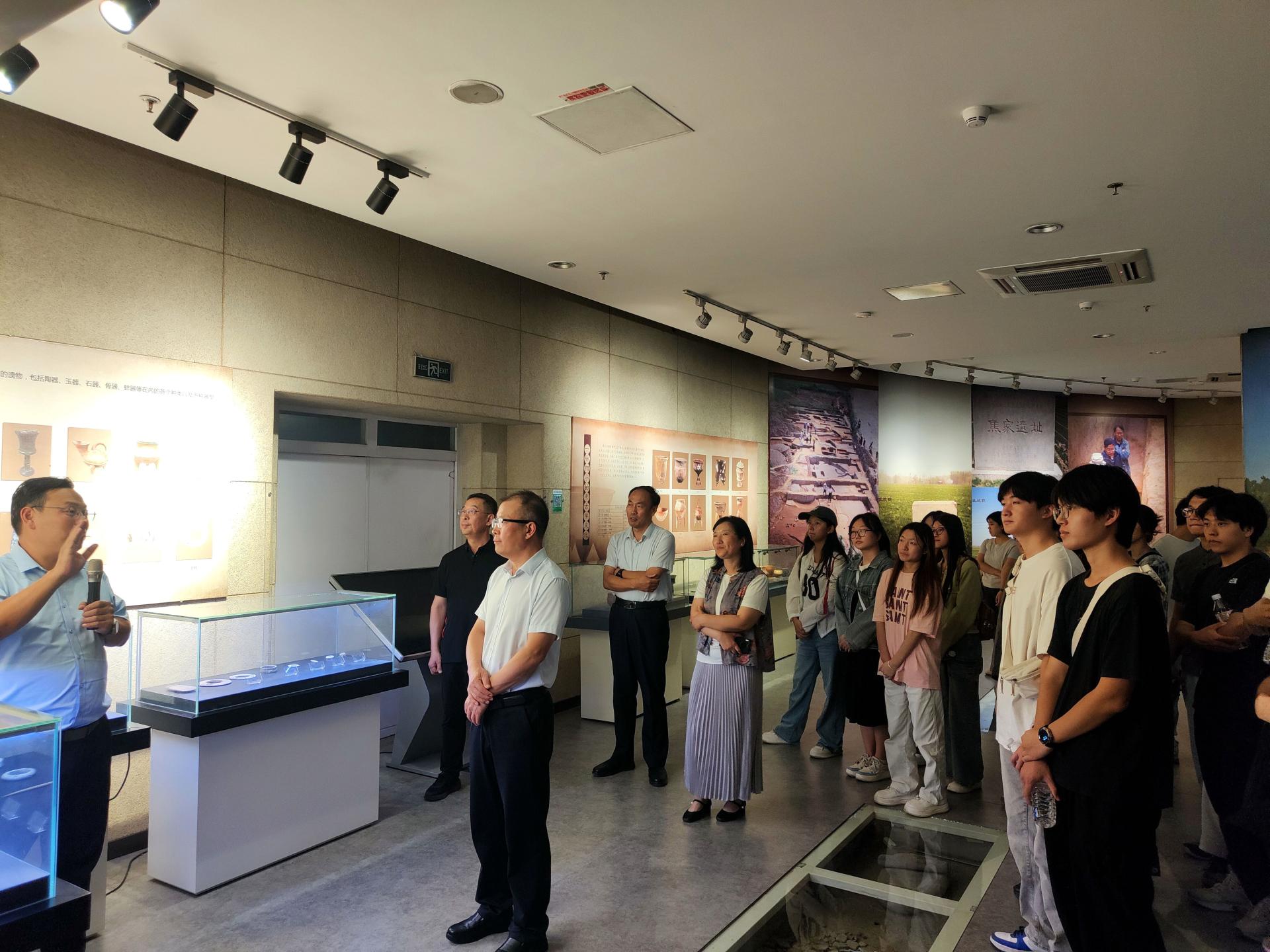 与会人员集体听取城子崖遗址博物馆讲解,通过参观后李(西河)文化、北辛文化、大汶口文化、龙山文化、岳石文化时期的文物史料,深刻领略源远流长的龙山文化对中华文明探源工程的重要作用,深刻感受中华民族多元一体的格局和生生不息的生命力。