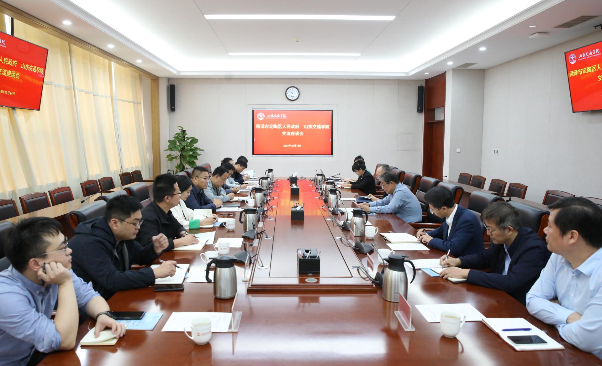 10月14日上午,菏泽市定陶区人民政府党组成员、副区长刘刚一行11人来我校对接校地合作事宜。学校党委委员、副院长王保群出席座谈交流会。