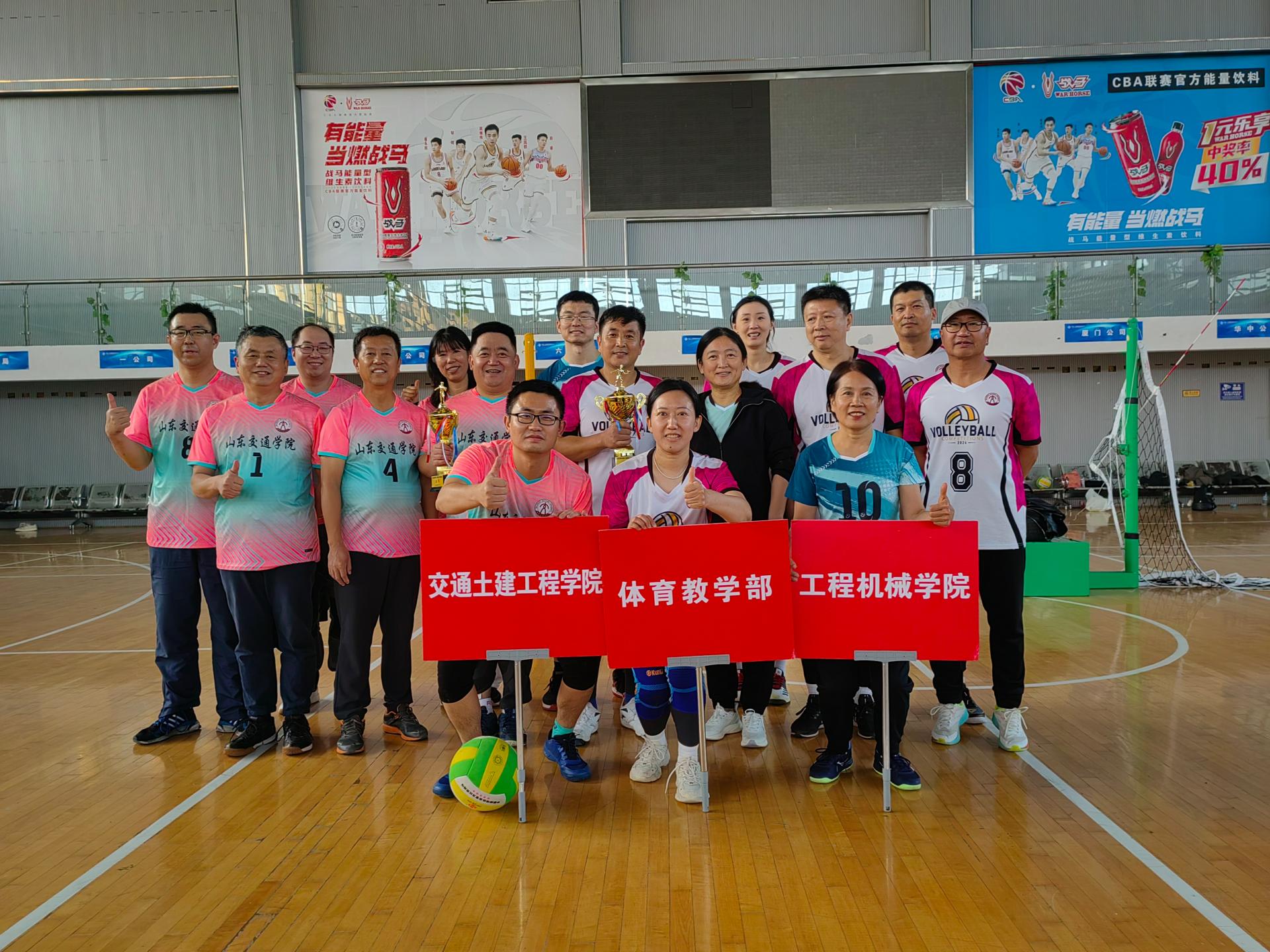 本次比赛采用五人制混合团体赛,各队参赛队员团结协作、顽强拼搏,精准地发球、传球、扣杀,赢得现场师生阵阵掌声和加油声。经过激烈角逐,最终体育教学部工会获得冠军、交通土建工程学院工会获得亚军、工程机械学院工会获得季军。