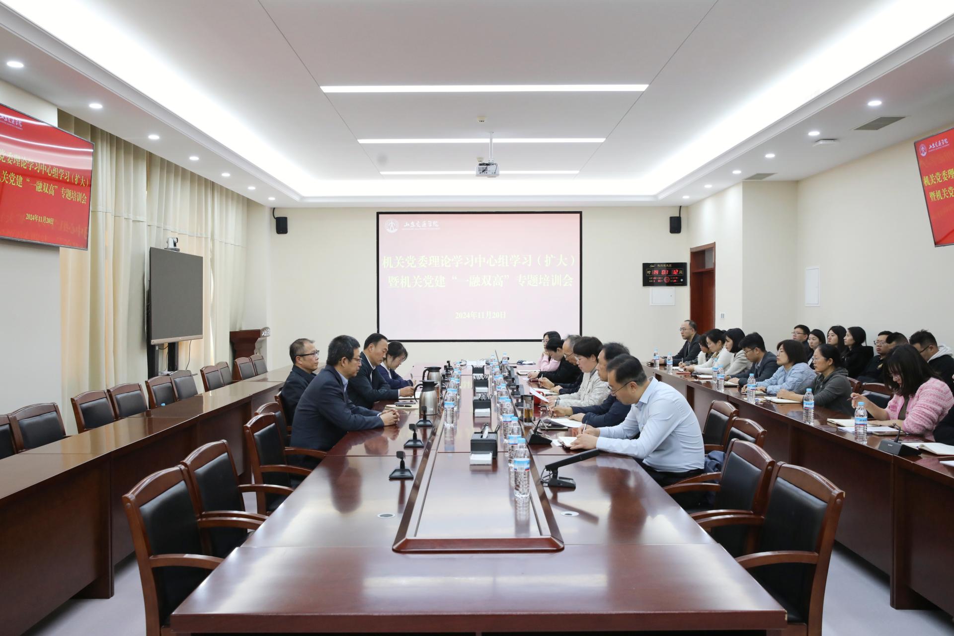 11月20日,机关党委在长清校区明德楼301会议室召开理论学习中心组学习(扩大)暨机关党建“一融双高”专题培训会。学校党委副书记李贞涛出席会议。会议由机关党委书记闫荣双主持。