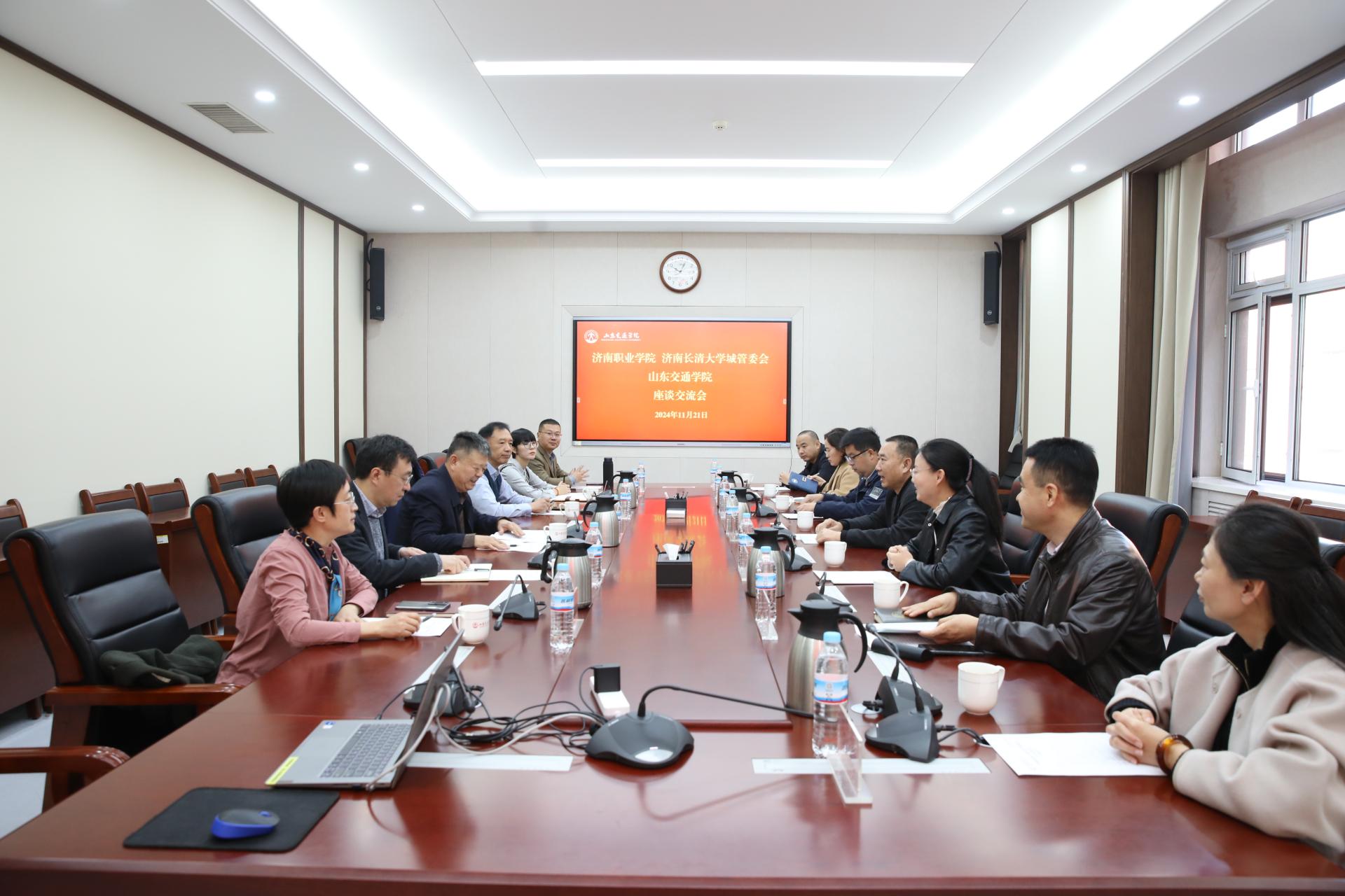 11月21日上午,济南长清大学城管委会党工委委员、纪检监察工委书记商政,济南职业学院党委委员、纪委书记、监察专员熊爱军一行来校调研交流。座谈会在长清校区明德楼302召开。学校党委委员、纪委书记、监察专员刘世杰出席并主持会议。