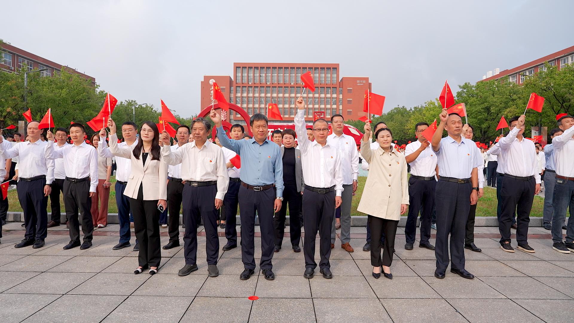 “交通报国,强国有我!”全体学生以饱满的热情、洪亮的声音齐声喊出铮铮誓言,展现出青年一代立志投身交通事业、助力强国建设的壮志豪情。与此同时,学校军魂连队员有序托举“交通报国,强国有我”八个醒目大字缓缓走入广场,将活动氛围推向高潮。随后,悠扬动人的《我和我的祖国》旋律在广场上响起,全体师生挥舞手中的小红旗,跟随旋律齐声歌唱,表达对祖国母亲最深沉的热爱与最美好的祝福。