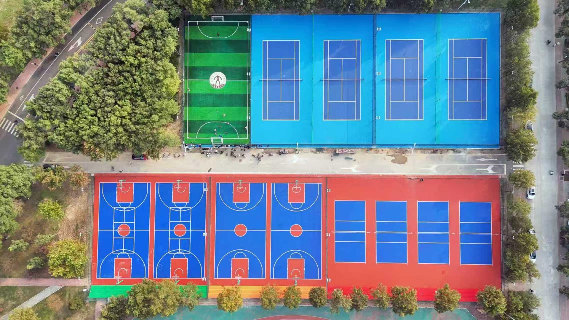 修建过程严格按照标准化运动场地设计要求,铺设环保硅PU、人造草皮、丙烯酸等材料,完善场地排水系统,有效解决场地老化磨损严重、标线斑驳不清、雨天积水等问题,切实提升体育教学和师生日常运动锻炼体验,为广大师生搭建安全舒适的运动空间。