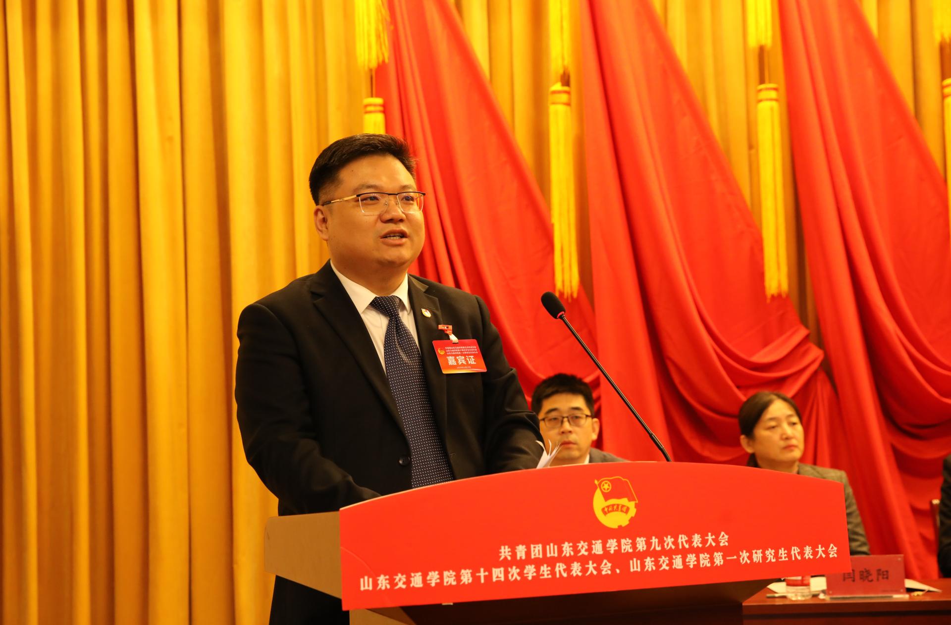 盛夏代表共青团山东省委向大会的召开表示热烈祝贺,并对学校高质量发展和共青团工作给予充分肯定。他对全校各级团组织和团员青年提出四点希望:一要紧扣政治学校功能定位,引领全校团员青年做信仰坚定的追光者。要强化理论武装的引领力,推动党的创新理论入脑入心,引导广大团员青年争做习近平总书记要求的有理想、敢担当、能吃苦、肯奋斗的新时代好青年。二要扛牢先锋力量使命职责,组织全校团员青年做交通强国的实干家。要依托“百万大学生进社区”“三下乡”等载体,引导广大团员青年胸怀大局,投身社会实践,为中国式现代化挺膺担当。三要发挥桥梁纽带关键作用,服务全校团员青年做成长发展同行者。要牢固树立青年优先发展理念,关注青年所思、所忧、所想,努力让青年在遇到困难时想得起、找得到、靠得住、离不开。四要锚定先进组织建设目标,聚焦全校团员青年做改革创新的践行者。充分发挥党建带团建制度优势,将党的领导全面、系统贯穿到团的工作和建设中,全面推进从严治团、从严治会向纵深发展。