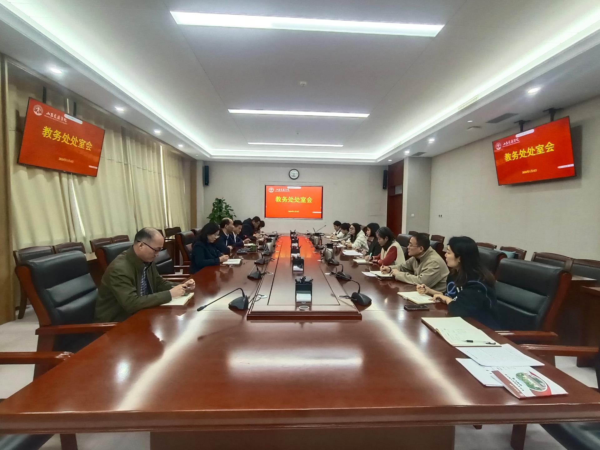 1月4日上午,教务处在长清校区明德楼303会议室举行处室会。学校党委副书记、院长孔伟金,党委委员、副院长李秀领出席。会议由教务处处长黄玉娟主持。